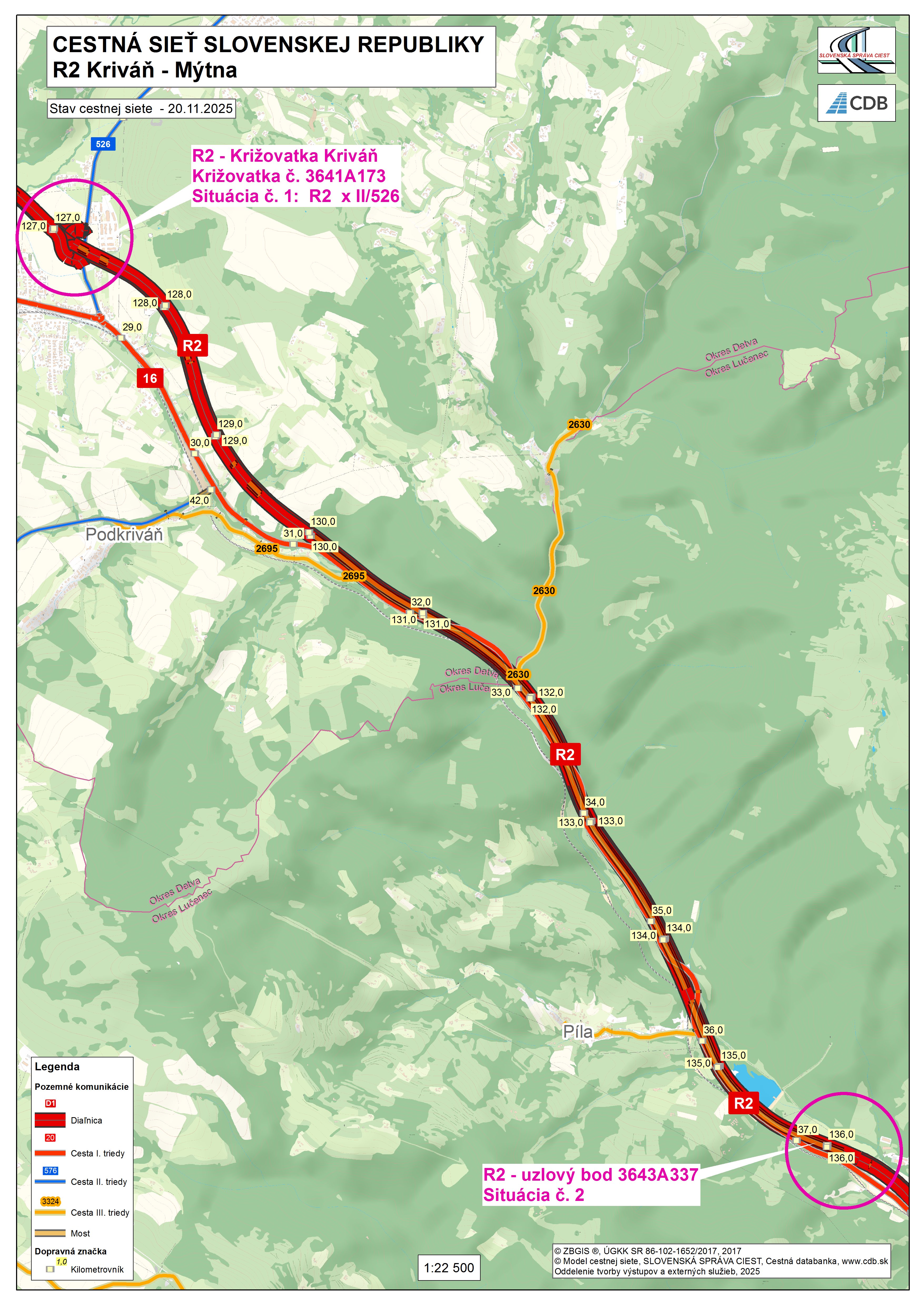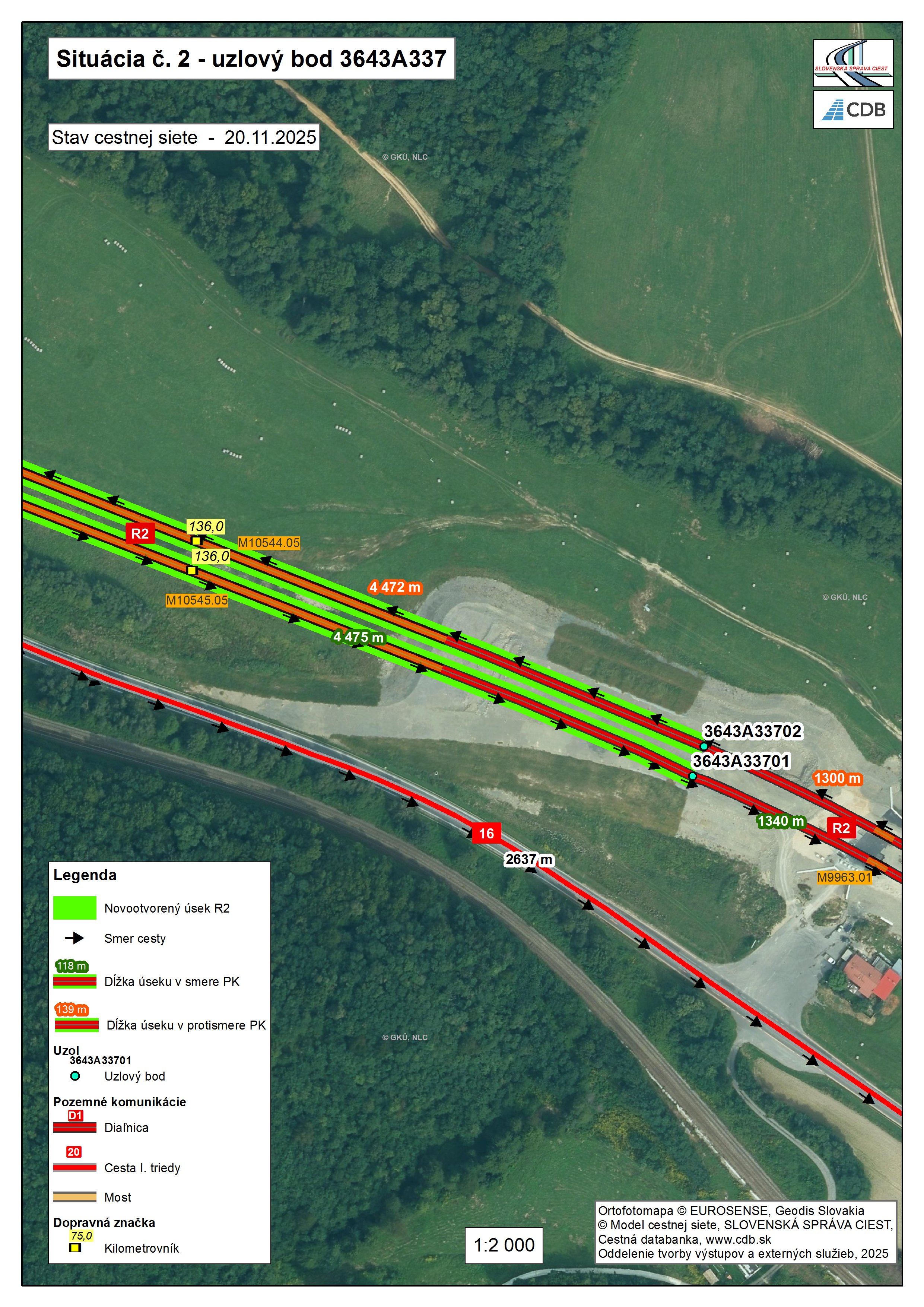 Podrobné zobrazenie novootvoreného úseku R2 bude zobrazený na Portáli Informačného systému modelu cestnej siete/ v aplikácii Mapy CDB / v priebehu mesiaca december 2025.
